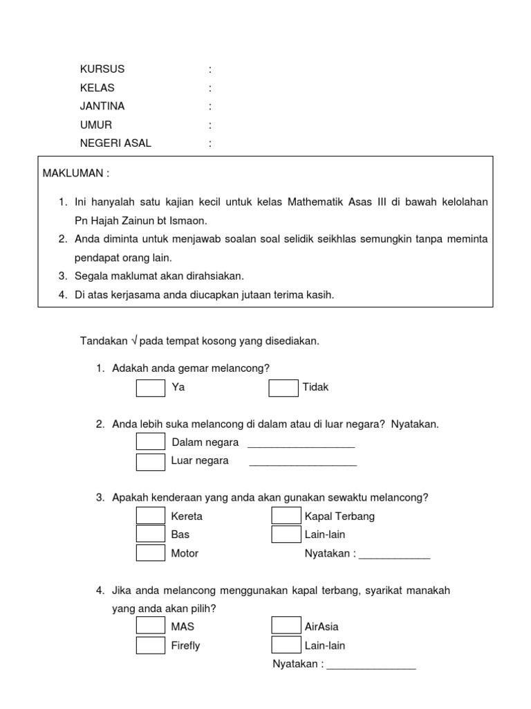 Contoh Soalan Untuk Borang Soal Selidik Jenniferbphoto