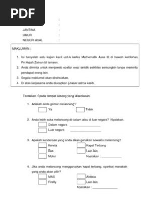 Admin contoh soalan soal selidik pengangkutan awam selangor p pdf kajian penerokaan buli siber dalam kalangan pelajar umt. Tuanpuan dipohon menjawab soalan yang dikemukakan dengan teliti.